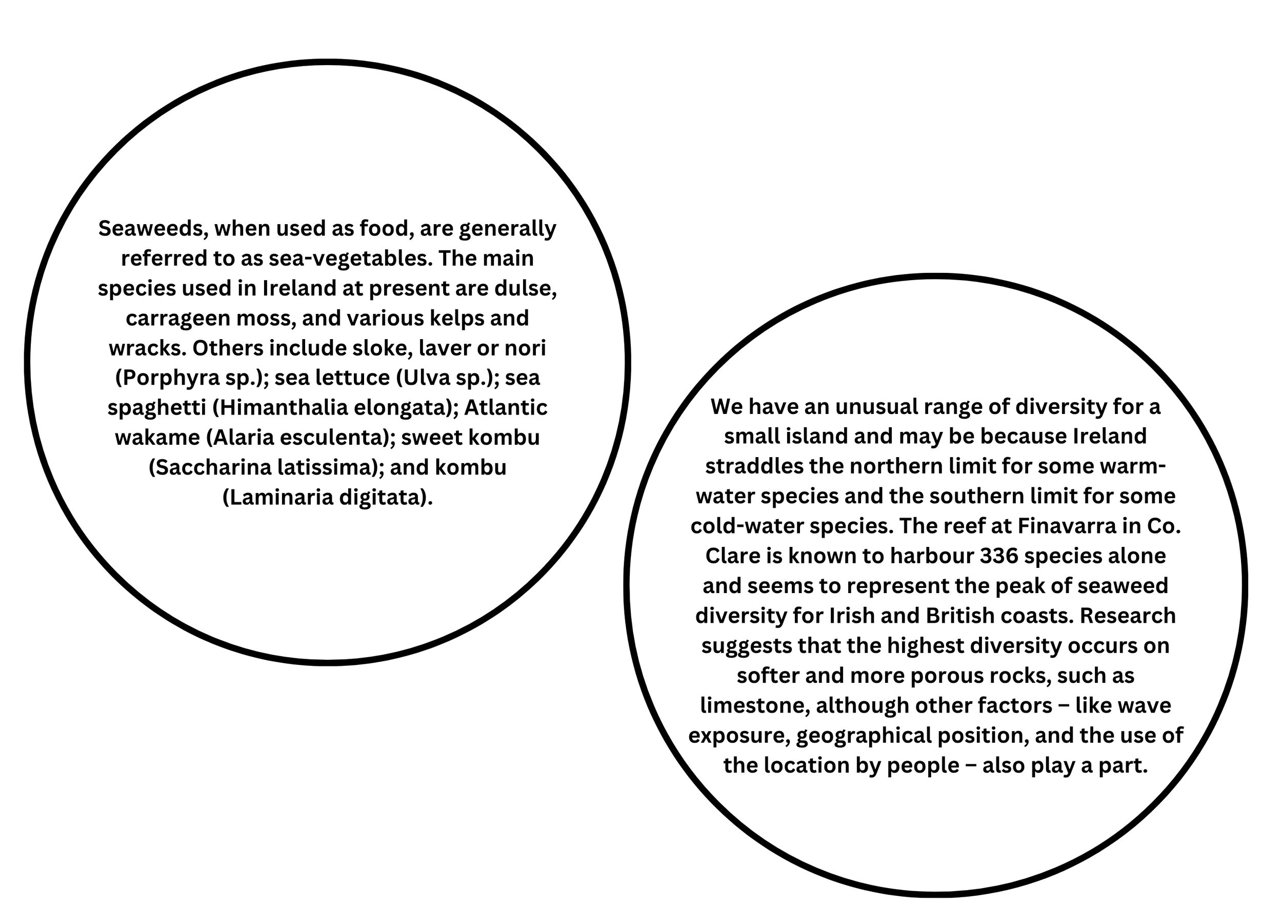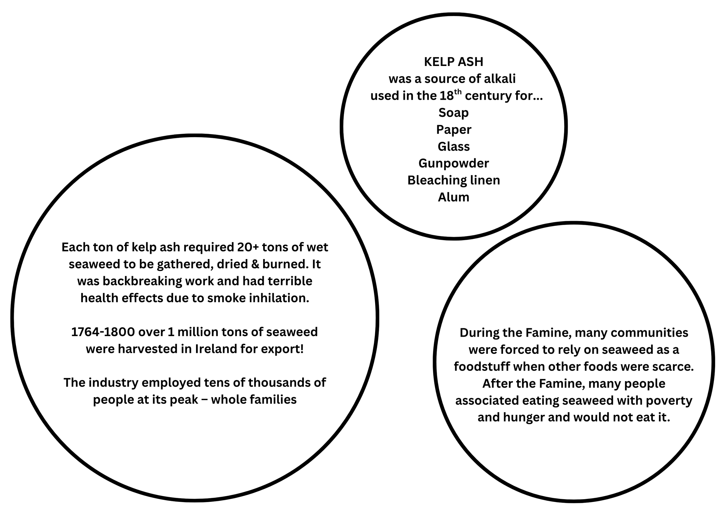 The curiosity wall, giving details of the history of Seaweed harvesting in the area, the current state of it and what the future might hold. Much of the following information comes from a lecture The seaweed, kelp and iodine industry in Ireland especially in Co. Clare and generously shared by Peter E. Childs, Emeritus Senior Lecturer, Department of Chemical Sciences, University of Limerick